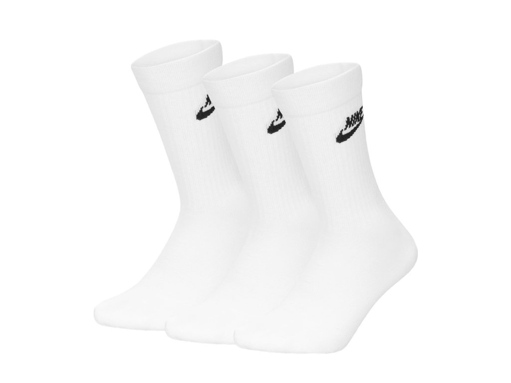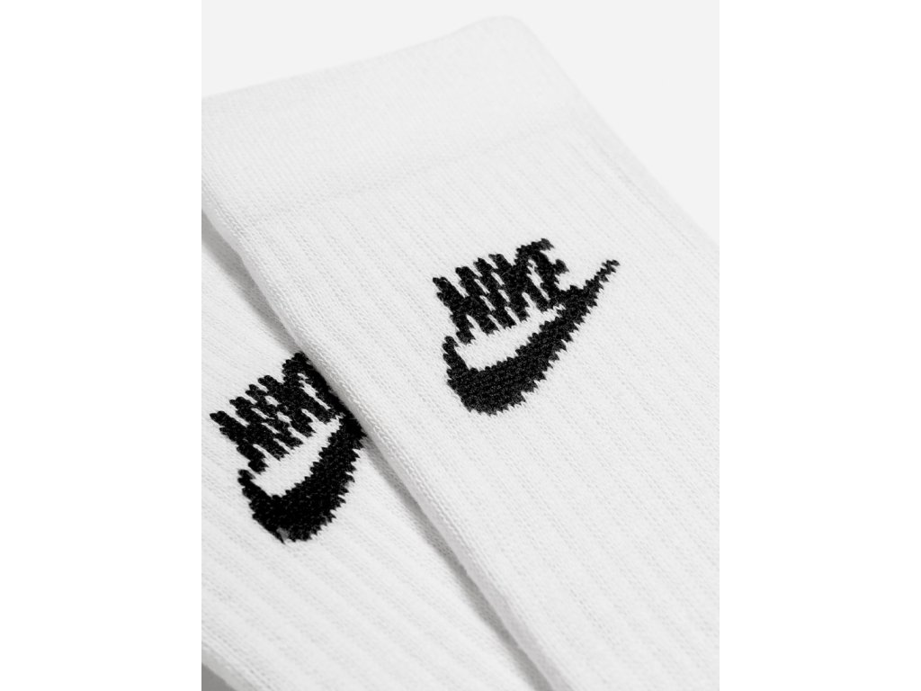 Klasické bílé Nike ponožky s černým logem a nápisem.