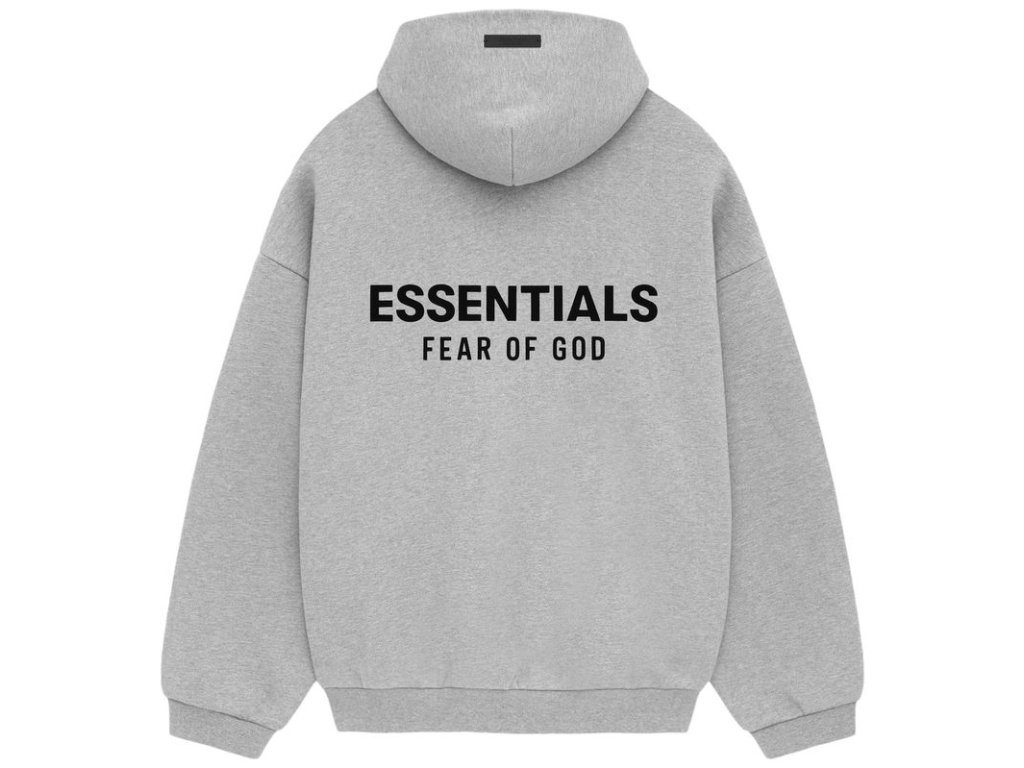 Prémiové mikina s kapucí Fear of God Essentials v světle šedé melírované barvě. Pánská streetwear mikina pro každodenní nošení.