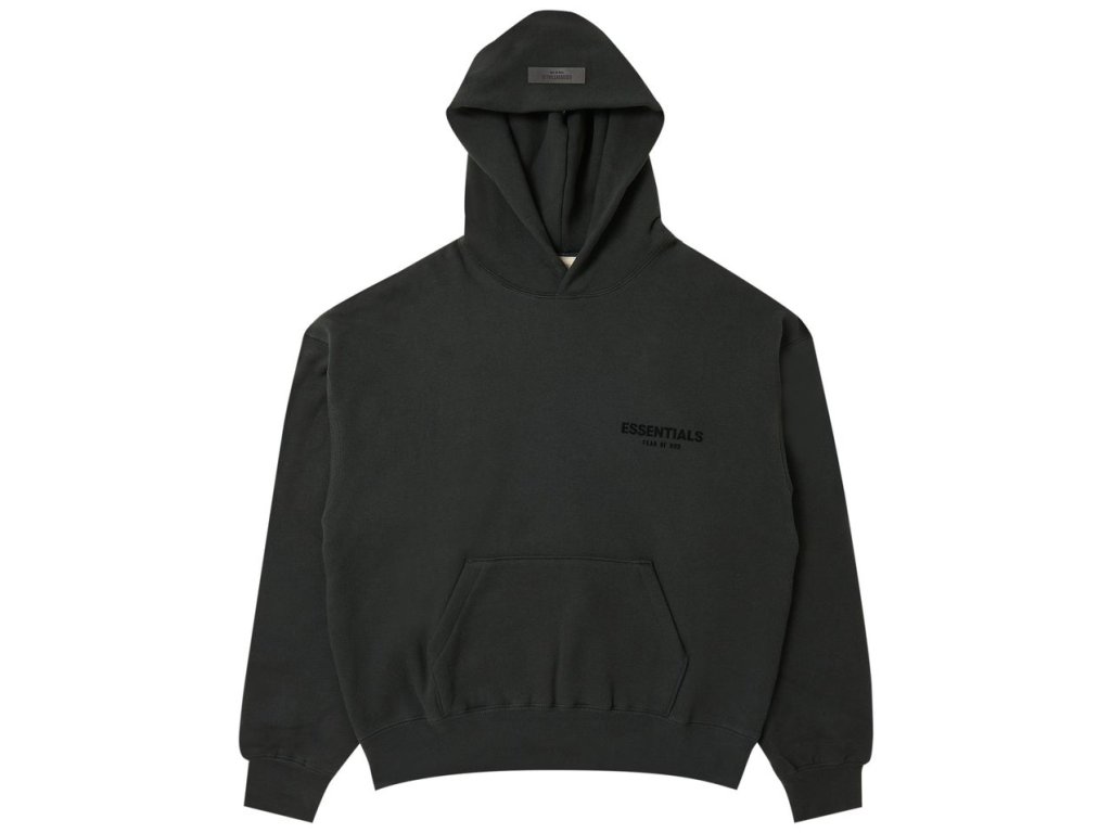 Prémiové mikina s kapucí Fear of God Essentials v černé barvě. Pánská streetwear mikina pro každodenní nošení.