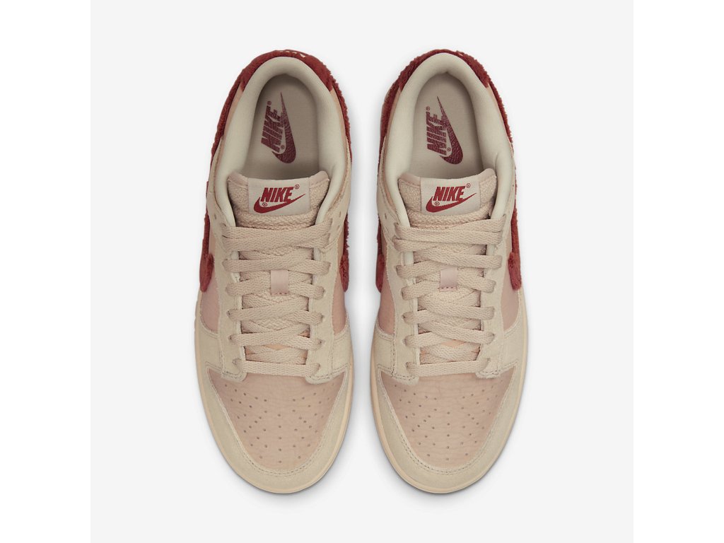 Nike Dunk Low „Terry Swoosh“ (DZ4706-200) je exkluzivní dámský model s unikátním semišovým svrškem v jemných zemitých tónech a charakteristickým chlupatým Swooshem v odstínu tmavě červené. Tento design kombinuje komfort i jedinečný styl, ideální pro podzimní sezónu.
