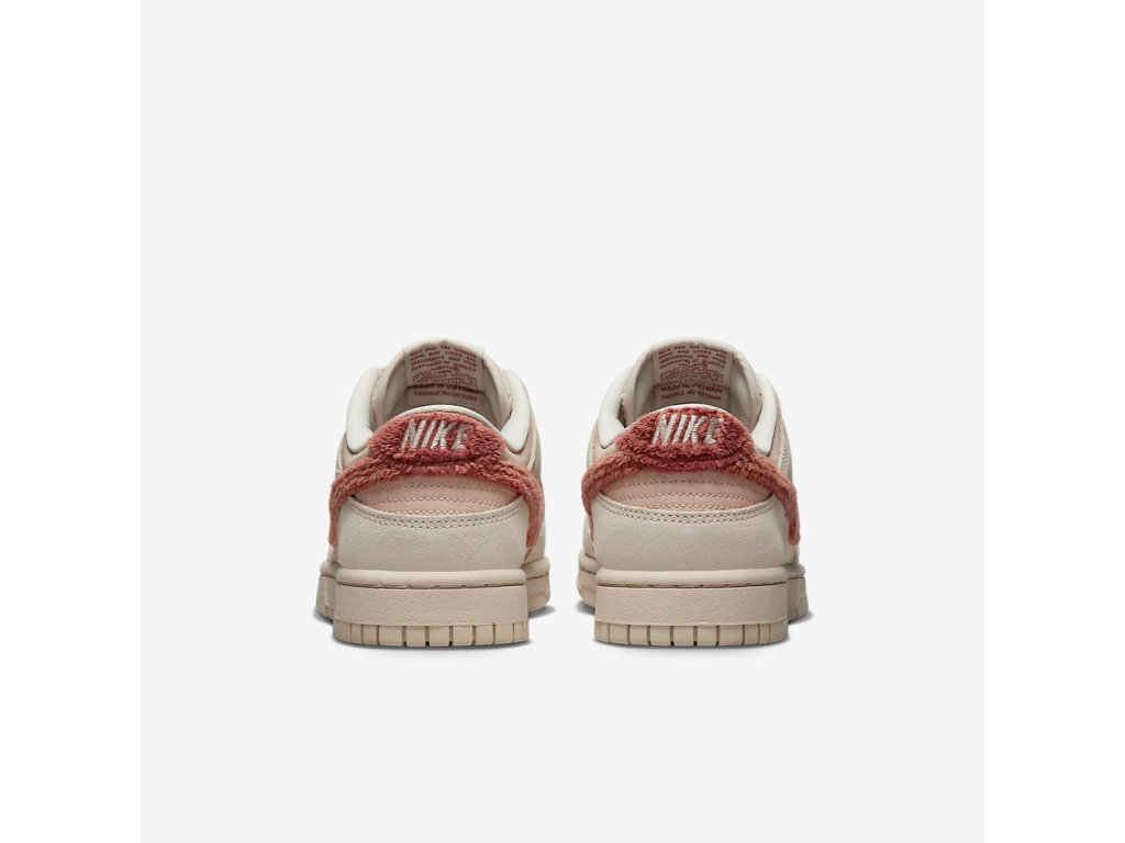 Nike Dunk Low „Terry Swoosh“ byly vydány v prosinci 2022 jako speciální edice zaměřená na ženy. Tenisky mají svršek z kombinace semiše a speciálního „terry“ materiálu, který vytváří unikátní texturu a designový prvek. Dominantním prvkem je tmavě červený a chlupatý Swoosh, který kontrastuje s béžovými a pískovými odstíny ostatních částí boty. Jazyk je vyroben z tkaniny připomínající závěsy, což dodává botám luxusní pocit. Podešev spojuje jemné odstíny růžové, bílé a písku, poskytující stylovou vizuální celistvost. Tento model je pohodlný, originální a ideální pro milovníky klasických i netradičních sneakers s moderním twistem.