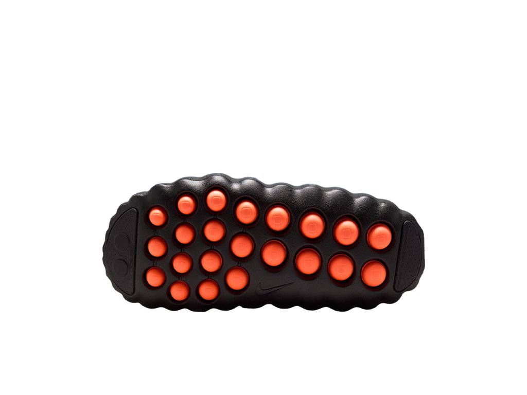 Nike Mind 001 Slide Black Chrome spojuje futuristickou vědecky vyvinutou platformu Mind s výrazným all–black lookem doplněným chromovými a Hyper Crimson detaily. Pod chodidlem pracuje 22 nezávislých pěnových uzlů, které se při každém kroku ohýbají a stlačují, aby stimulovaly nervová zakončení, aktivovaly senzorické oblasti mozku a podpořily soustředění i uvolnění po náročném dni nebo tréninku.