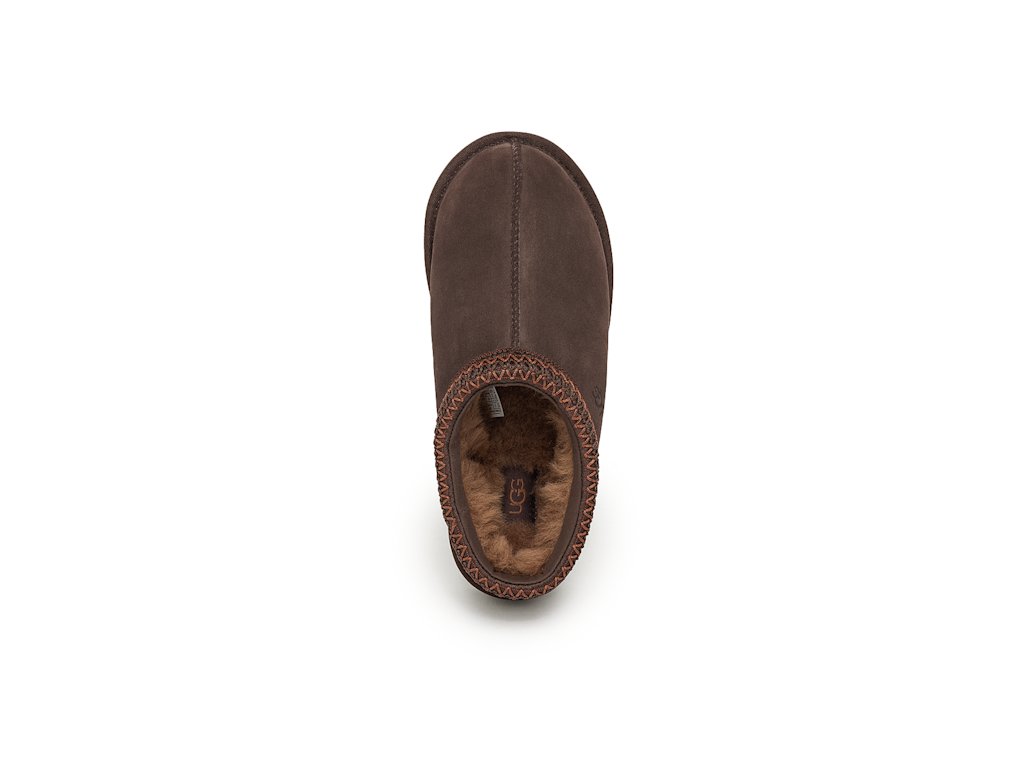 UGG Tasman II Burnt Cheddar (W) jsou dámské nazouvací pantofle v tmavě hnědé barvě z měkkého semiše s vyšívaným copánkovým okrajem. Mají hřejivou 17mm podšívku z ovčí kůže a stélku z recyklované vlny pro celodenní pohodlí doma i venku. Podrážka z EVA materiálu zajišťuje lehkost a prodyšnost.